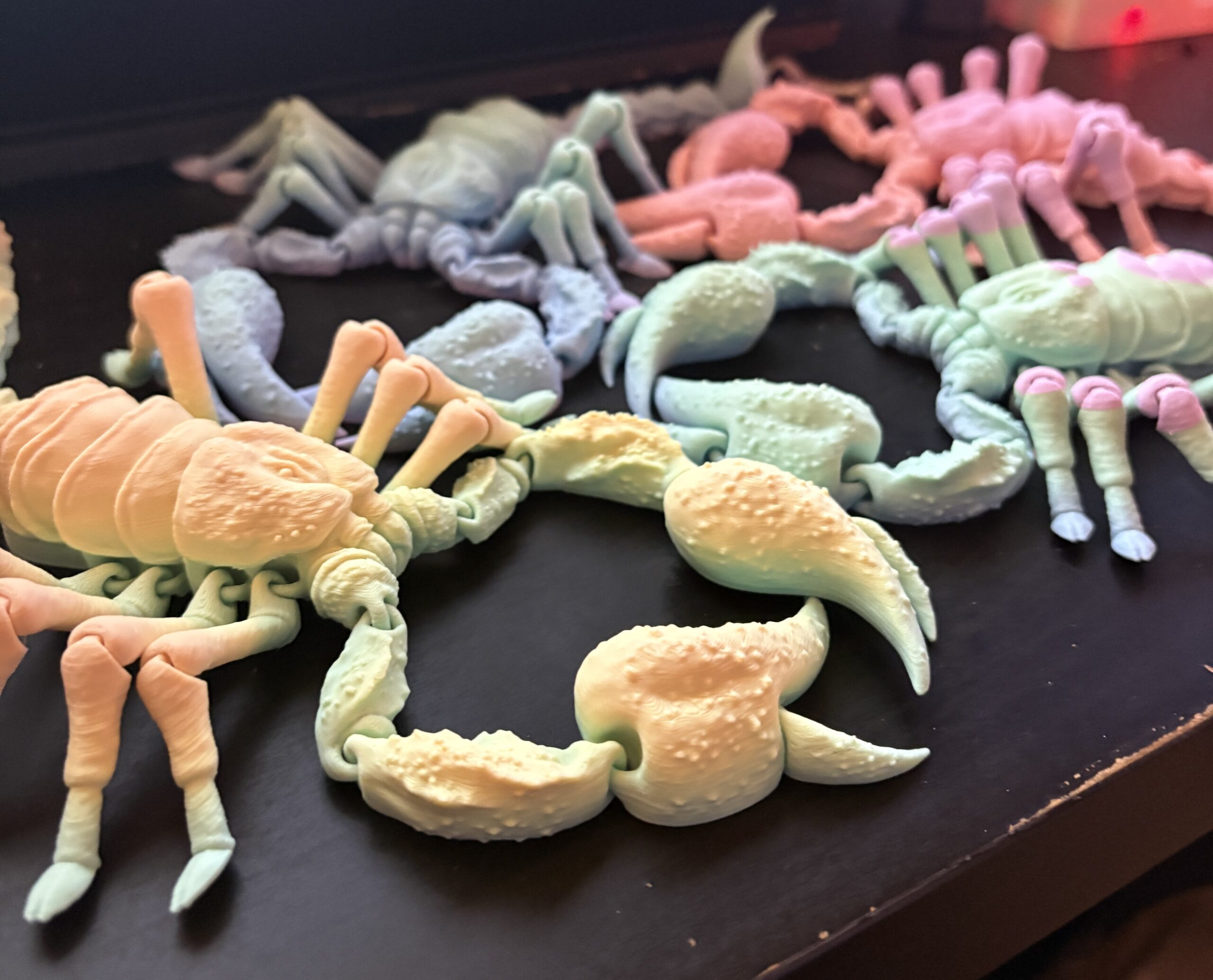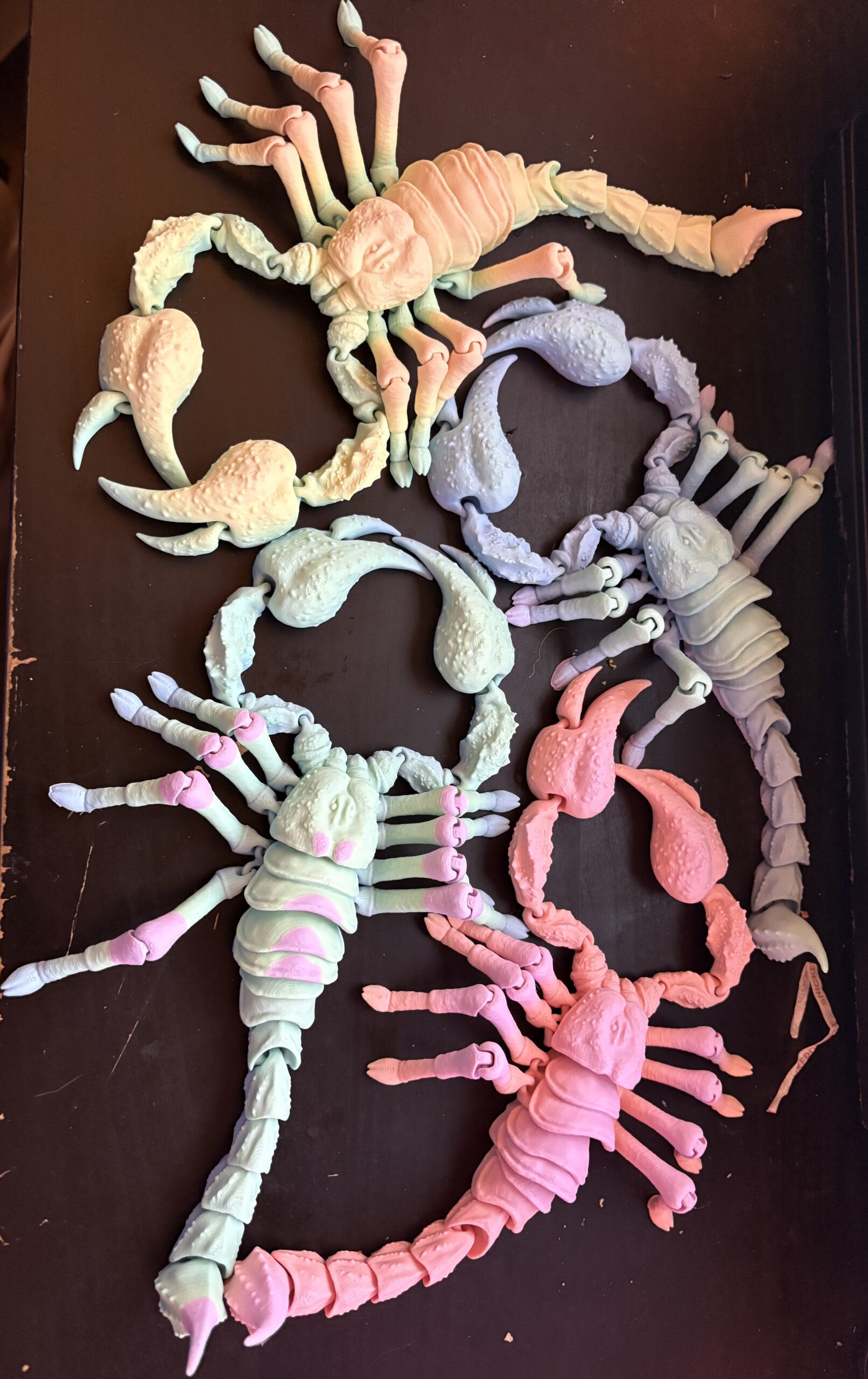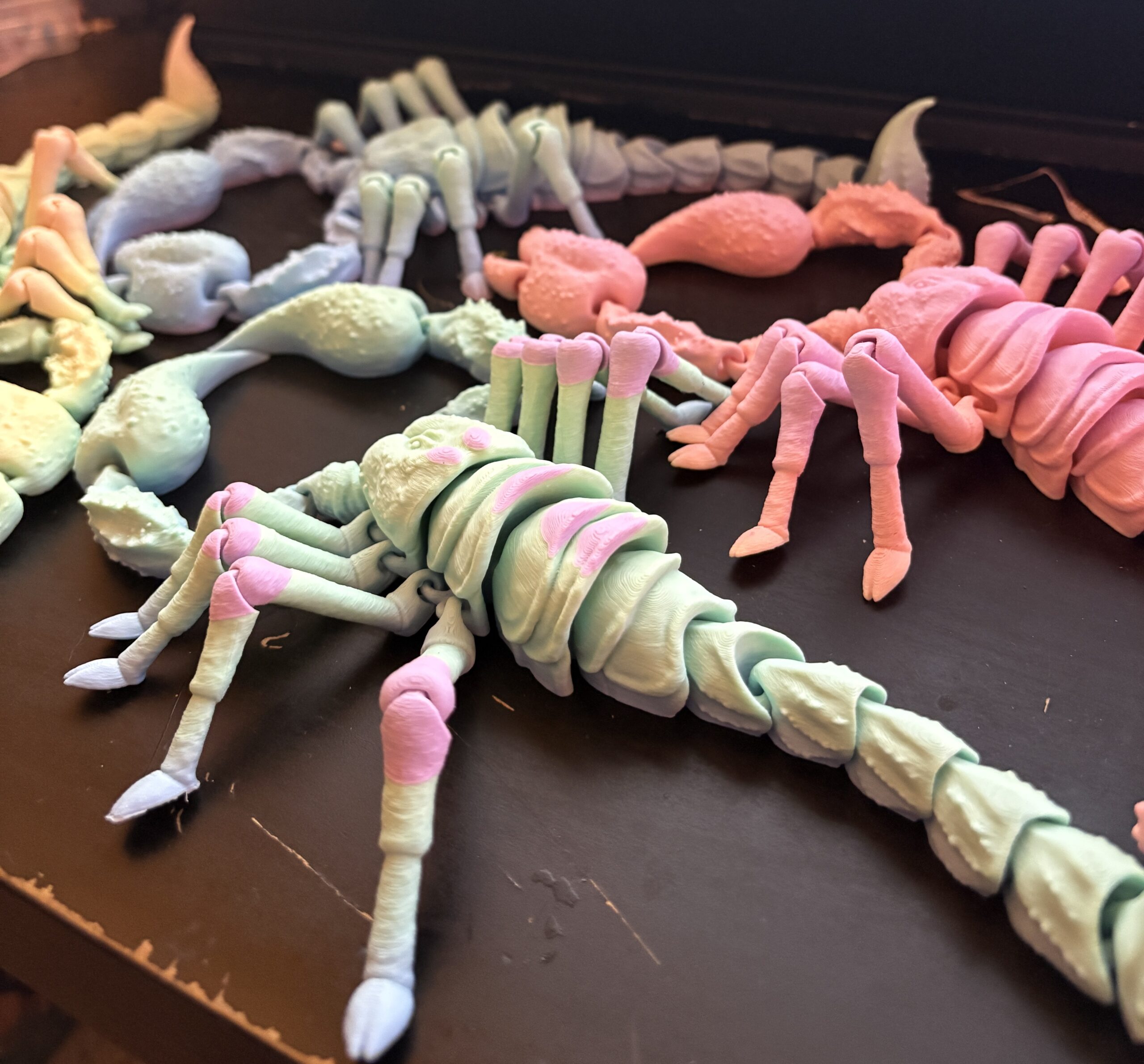Each scorpion shifts through vibrant hues as the filament transitions, meaning no two scorpions will ever look the same. The articulated design gives it lifelike movement—perfect for fidgeting, posing, or displaying as a standout conversation piece.