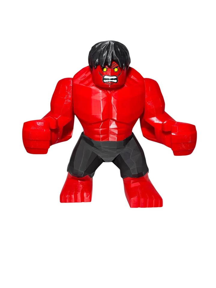 3D printed plastic Big Brick Lego Red Hulk. Stands around 10 inches tall.