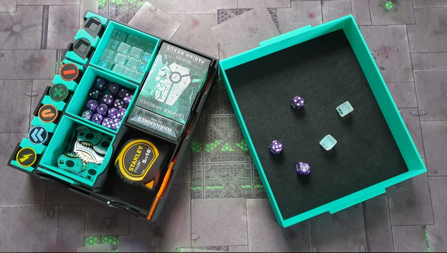 Le Chaos Tamer est une boîte de rangement optimisée pour organiser et protéger vos accessoires et figurines de Warhammer 40K, Age Of Sigmar, Necromunda, Kill Team, BloodBowl, Marvel Crisis Protocol, Star Wars Légion et bien d’autres.