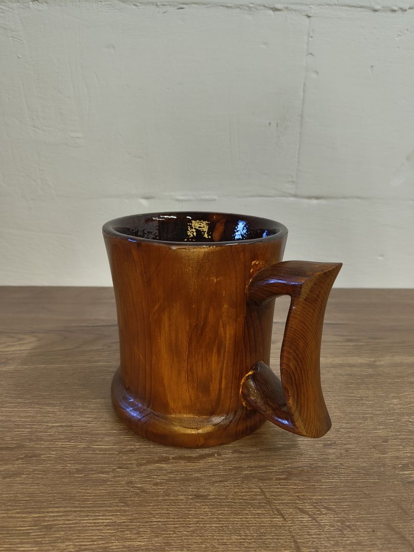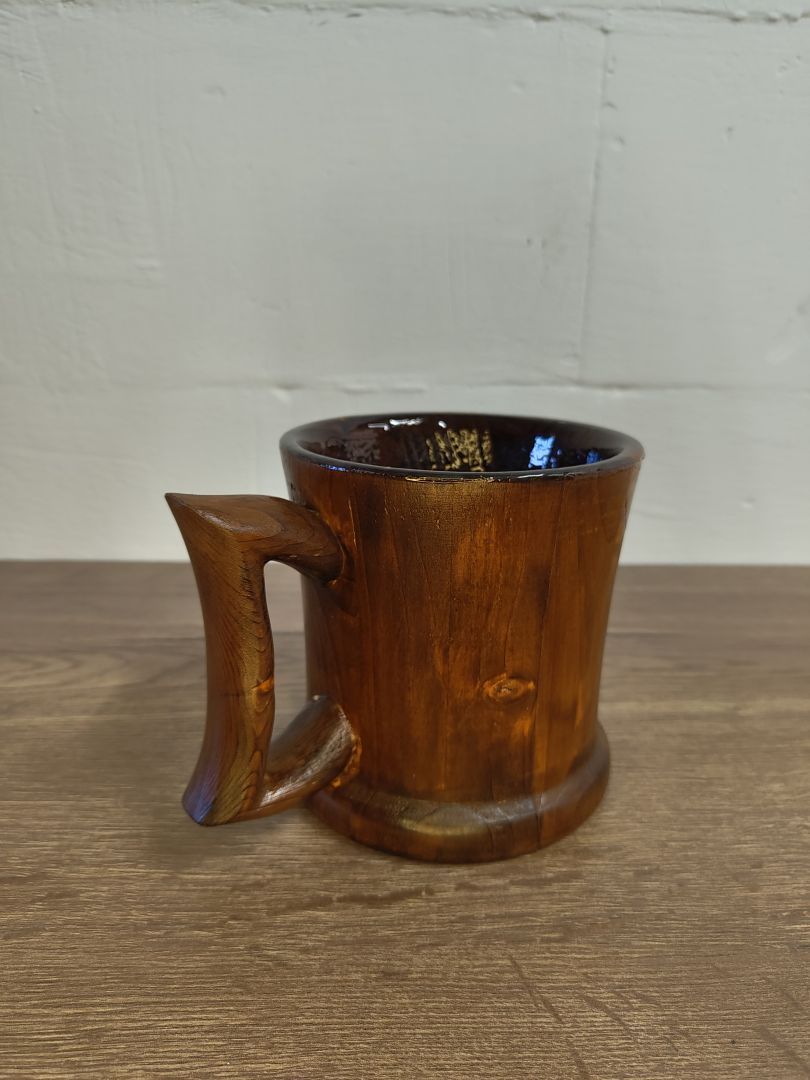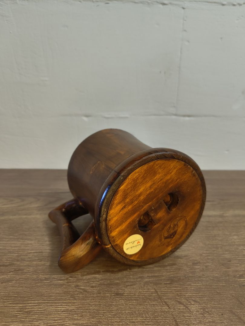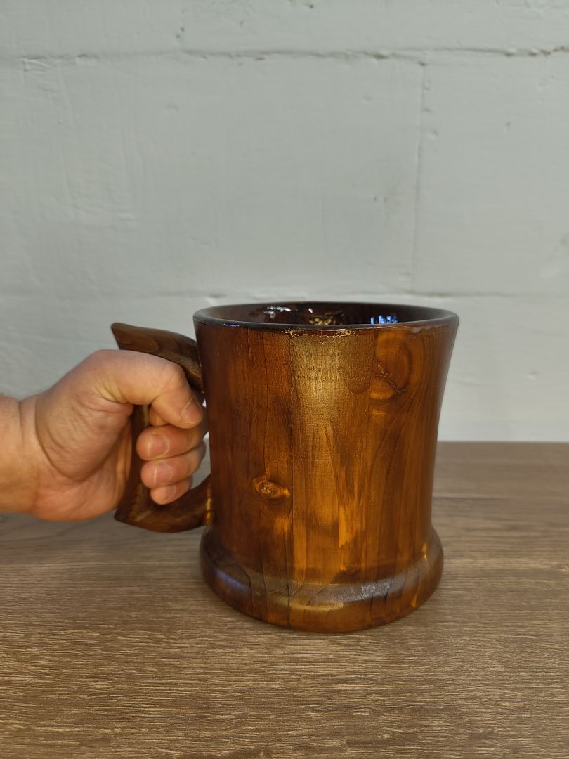 Dieser 0,5 Liter Humpen ist ein einzigartiges und nachhaltiges Trinkgefäß, das aus recyceltem Palettenholz gefertigt wurde. Mit viel Liebe zum Detail gedrechselt und in Handarbeit hergestellt, vereint er Funktionalität und ästhetisches Design. Der Humpen ist gebeizt, um die natürliche Holzmaserung hervorzuheben, und innen mit einem alkoholbeständigen und lebensmittelechtem Kunstharzlack lackiert, sodass er ideal für verschiedene Getränke ist.