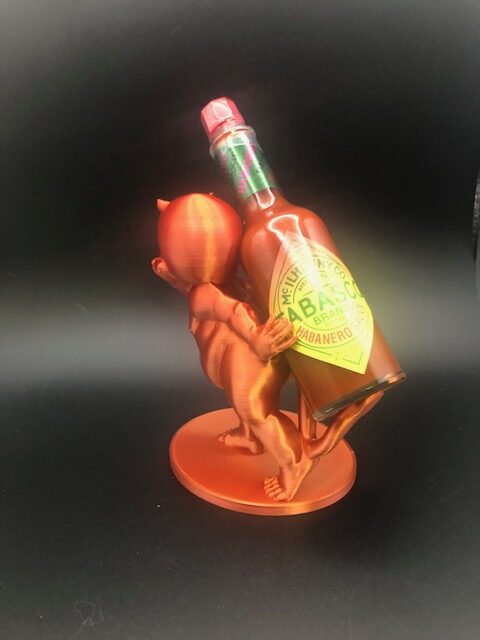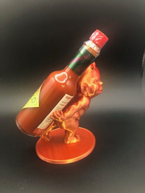 Here is a littl devil to hold onto your 2 oz hot sauce!