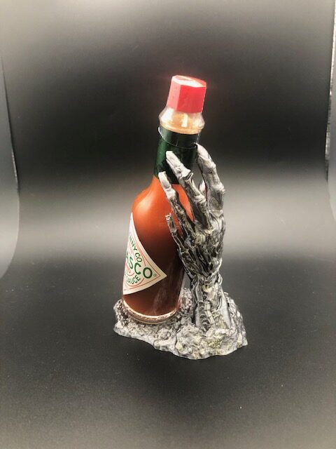 This hand has risen up to hold your 2 oz hot sauce. Printed with grey/silver filament. Sauce not included 3.75″ tall