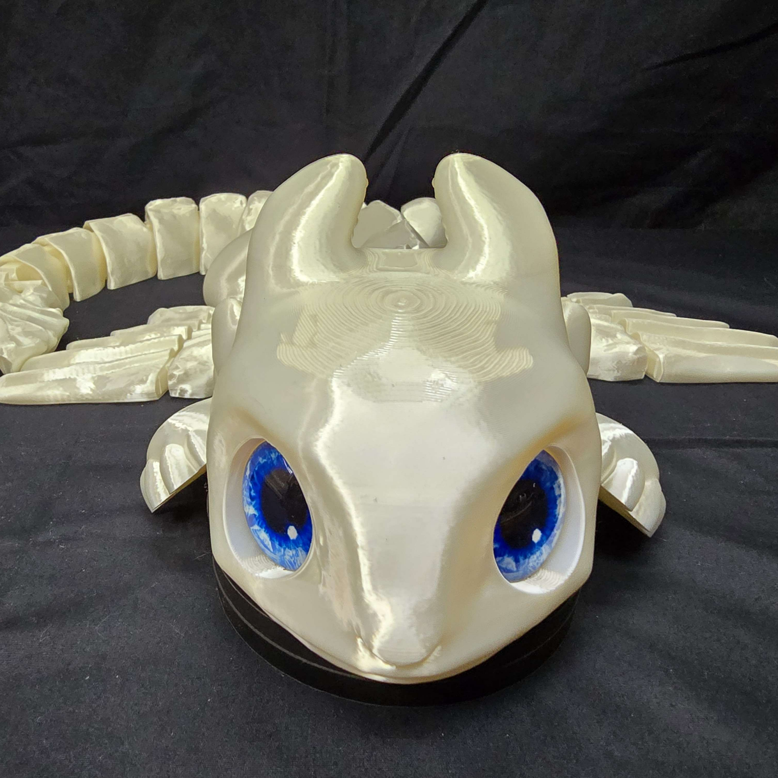 Modular light fury by Serev3D measures 29 inches long and has glass eyes!
