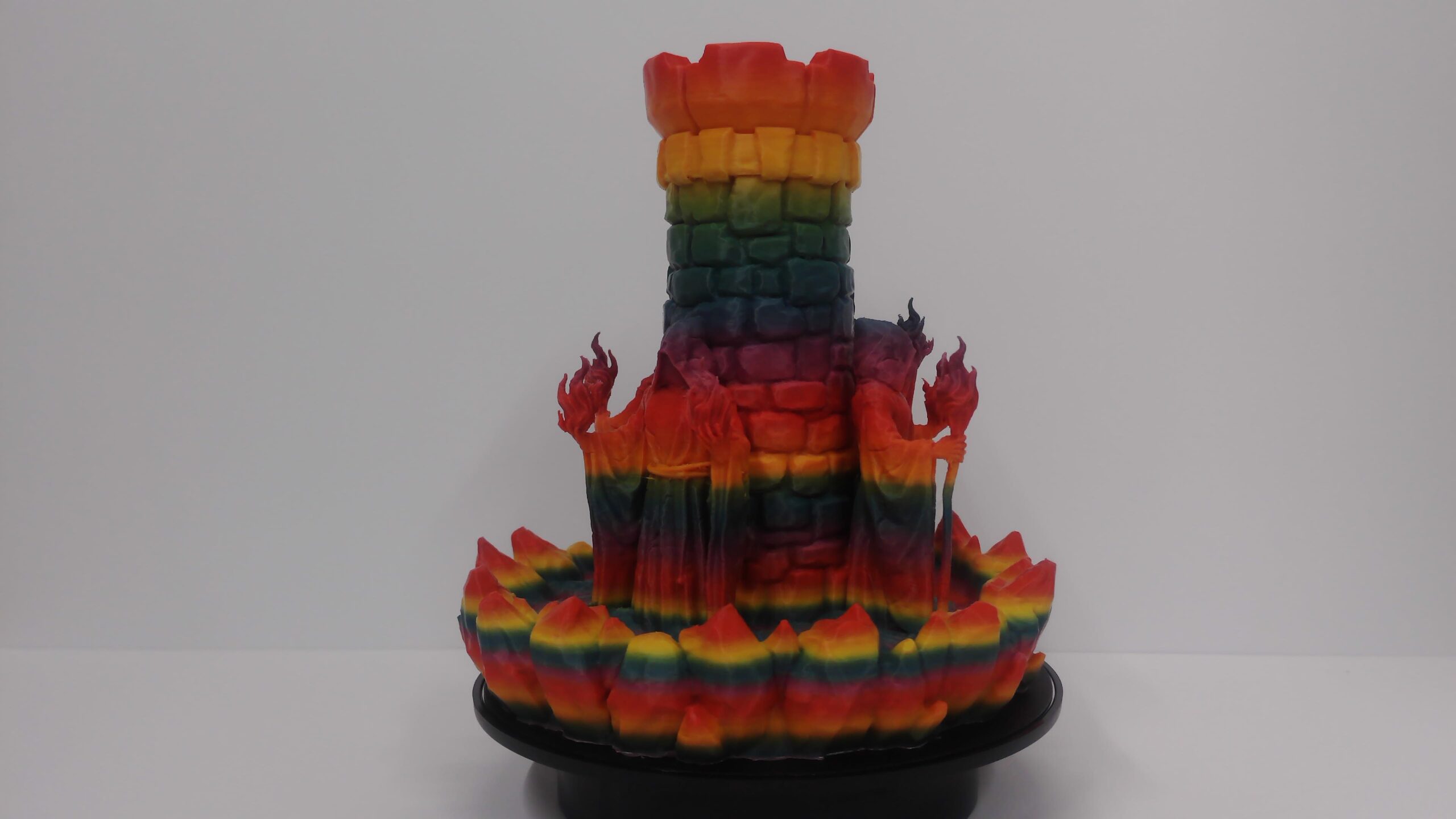 This tower was made with multi-color filament. We can make this in any color you desire. Simply email us and I will give you an estimated completion time. Please note that the color pattern may not be the same as the photo shown.