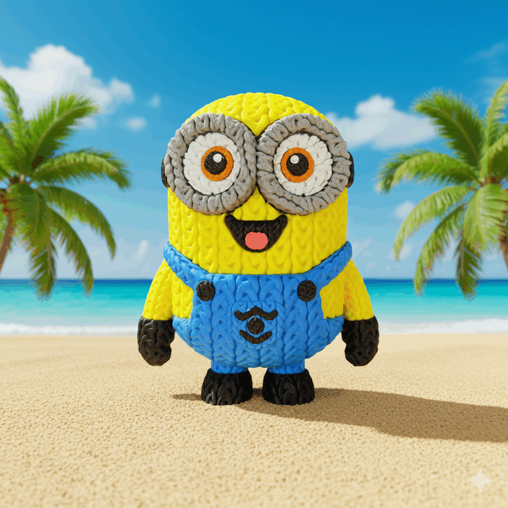 Figura decorativa impresa en 3D con un acabado que imita un tejido trenzado, lo que le da un aspecto original, divertido y muy vistoso. Su diseño colorido y detallado la convierte en una pieza ideal para estanterías, escritorios o como decoración en habitaciones infantiles.