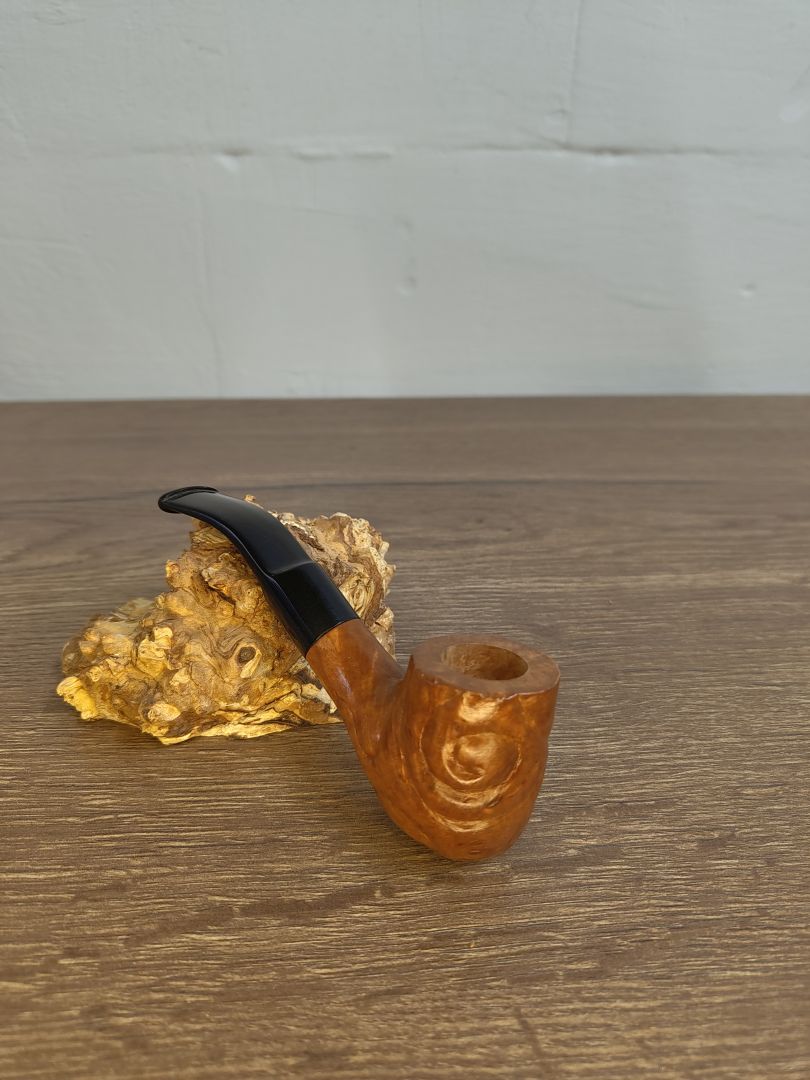 Die Oberfläche dieser edlen Pfeife ist in goldteak gebeizt, was das Holz dunkler und wärmer gestaltet. Glänzend lackiert verleiht es ihr einen luxuriösen Glanz und unterstreicht gleichzeitig die natürliche Schönheit des Holzes. Im Inneren bleibt die Pfeife unbehandelt, um das authentische Aroma deiner Lieblings-Tabaksorten vollständig zur Geltung zu bringen.